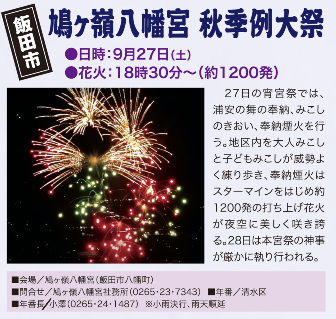 令和7年度秋季例大祭のご案内 2025.08.30 令和7年度秋季例大祭のご案内です。 宵宮祭 9月27日(土)午後3時より 式典並びに「浦安の舞」奉納 本宮祭 9月28日(日)午後2時より 式典並びに「浦安の舞」奉納 令和7年度春季例大祭のご案内 七五三詣でのご案内 新着記事 お知らせ一覧 2025.10.20 紅葉ライトアップのご案内 2025.10.20 ステアクライミング大会のご案内 2025.10.20 菊花展のご案内 2025.09.28 ご祈祷料改定のお知らせ